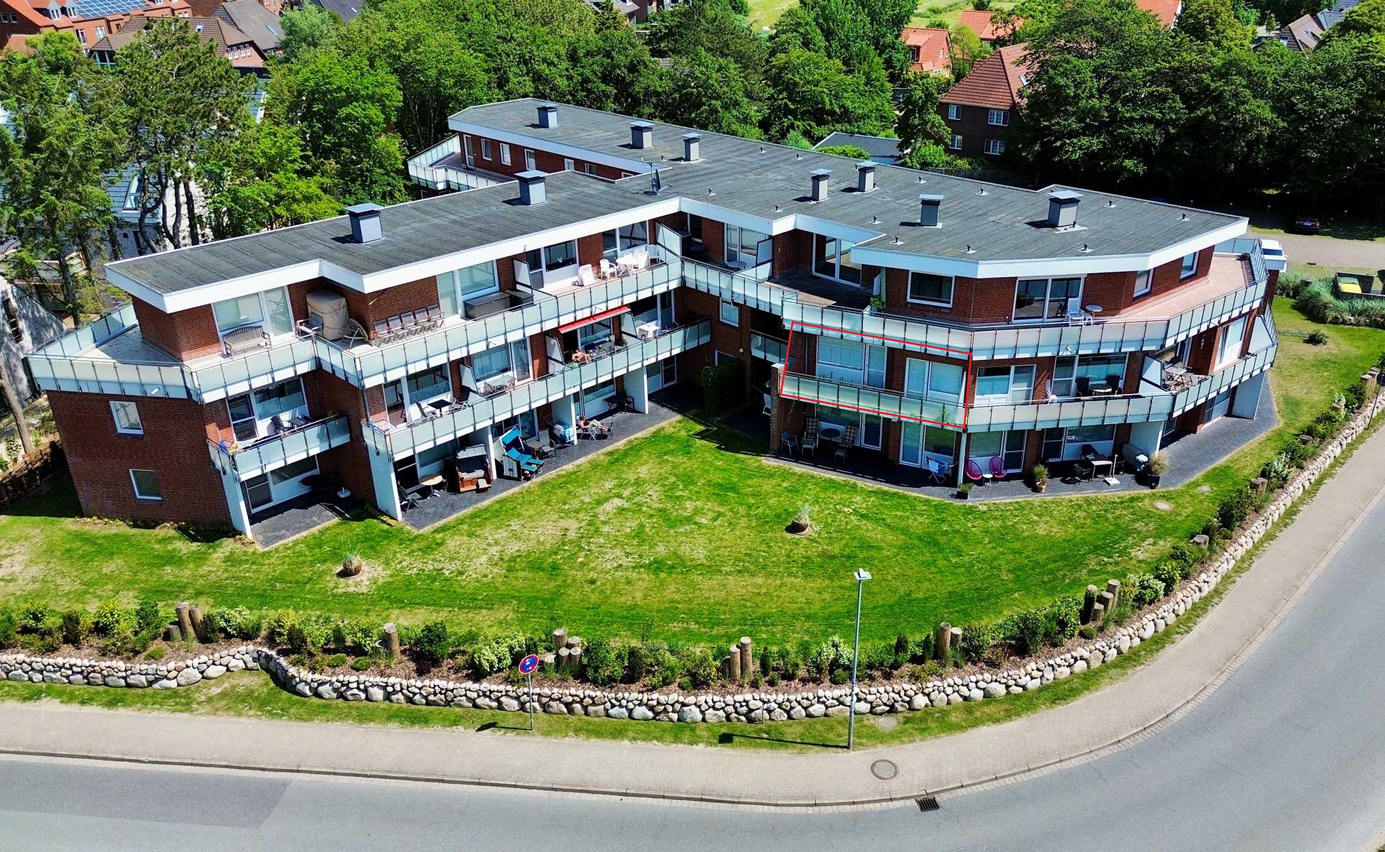 Die Wohnung liegt in einer zwei geschössigen Ferienwohnanlage direkt hinter dem Deich in Sankt Peter-Ording, Ortsteil Ording. Das Gebäude ist mit einem Flachdach und einem umlaufenden Rotklinker versehen. Seitlich des Hauses befinden sich 42 Kfz-Stellplätze. Jeder Wohnung ist ein Stellplatz fest zugeordnet.